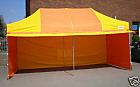 Unser Verkaufsstand auf Stahlgestell-Basis ist in nur 60 Sekunden ohne Werkzeug mit nur 4 Handgriffen aufgebaut. Universell einsetzbar als Verkaufspunkt, ist es dank seinem genialen Faltsystem ohne Einzeltteile schnell einsatzbereit. Seine Zeltbeine aus verzinkten und verschraubten Präzisionsstahlrohren mit 35 mm Durchmesser, Streben, sowie Verbindung-steile aus Eisen sorgen für einen festen Stand. Mit seinen windsicheren Klettverschlüssen an den Seitenwänden und den absolut wasserdichten und UV-stabilisierten Polyesterbezügen (200g/m2) ist Ihre Ware immer bestens geschützt. Höchste Qualität bei der Produktion, hochwertige Materialien und eine sorgfältige und genaue Verarbeitung dürfen Sie voraussetzen. Lieferumfang: Gestell, Dachplane, 2 Seitenwände ohne Fenster, 1 Rückwand, 1 Markise sowie 3 Transporttaschen. Farbe nach Wahl: Gelb, Orange, Rot, Schwarz