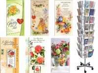 Gemischtes Sortiment aus Blancokarten, Geburtstagskarten, Glückwunschkarten mit Blumen, Glückwunschkarten zur Geburt, zur Hochzeit, zur Silberhochzeit, Trauerkarten und vieles mehr. Teilweise mit Innentext, Silber- oder Goldapplikationen und Prägungen und anderes können dabei sein – alles hochwertig! Mindestens 4fach sortiert, alle Karten sind mit einem Briefcouvert einzeln in Cellophan verpackt. Sie bekommen mindestens 3.000 einzelne Karten. Jede Karte können Sie von 1,50 Euro bis 3,00 Euro oder mehr verkaufen, es gibt keinerlei Vorschriften, den Verkaufspreis bestimmen Sie allein. Die unverbindlichen Preisempfehlungen der Hersteller bzw. Großhändler liegen bei ca. 6.750.- Euro im Verkauf.